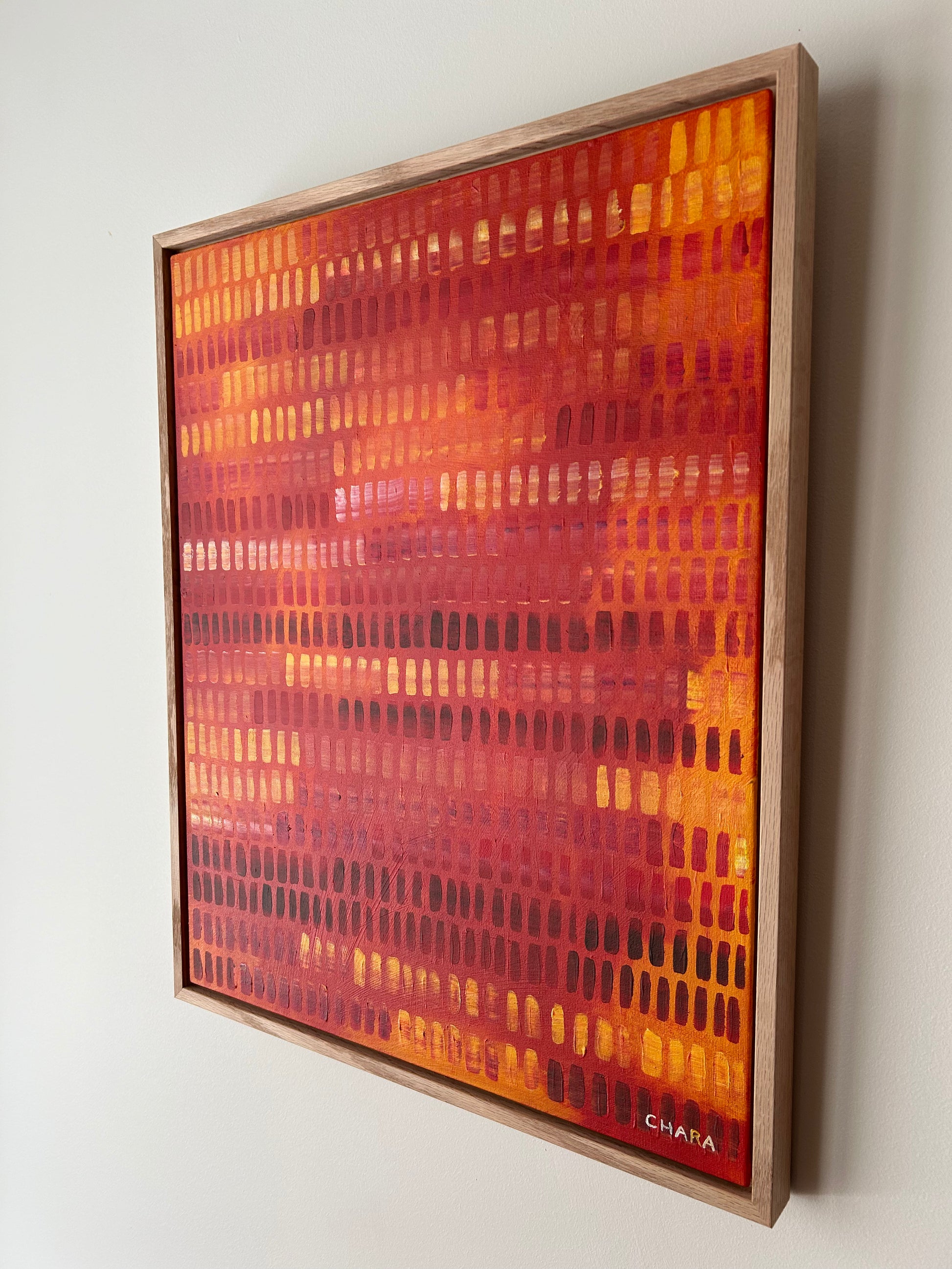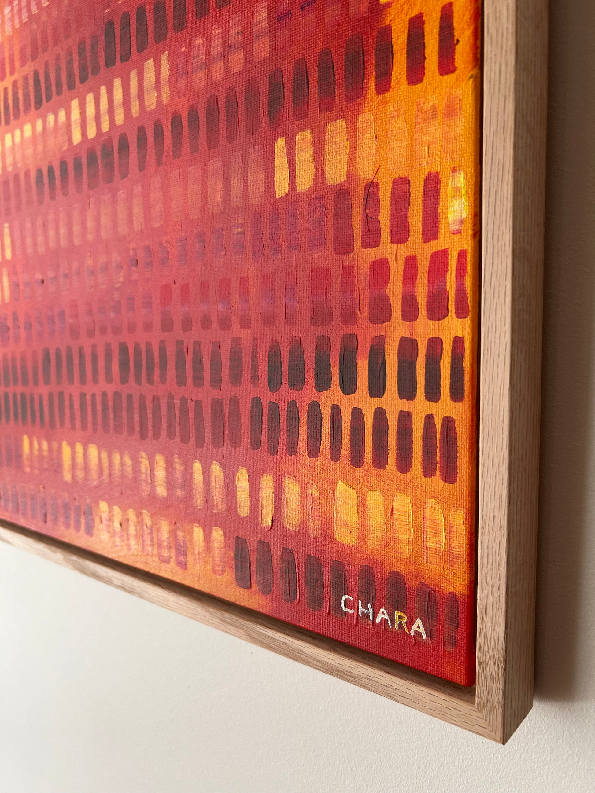 Framed in a premium oak 28mm deep floating frame, with hanging wire attached, ready to hang.