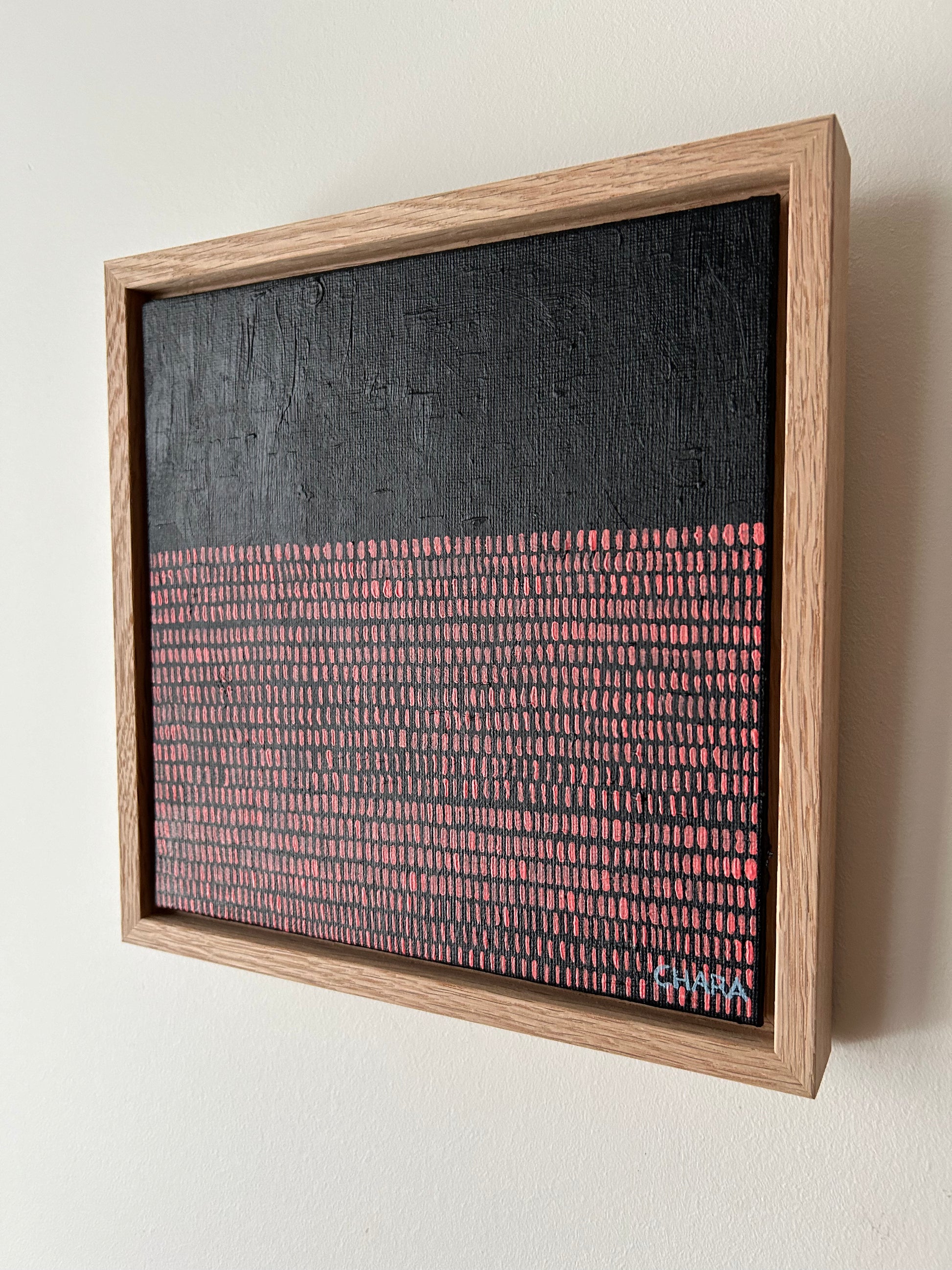 Framed in a premium oak 28mm deep floating frame, with hanging wire attached, ready to hang.