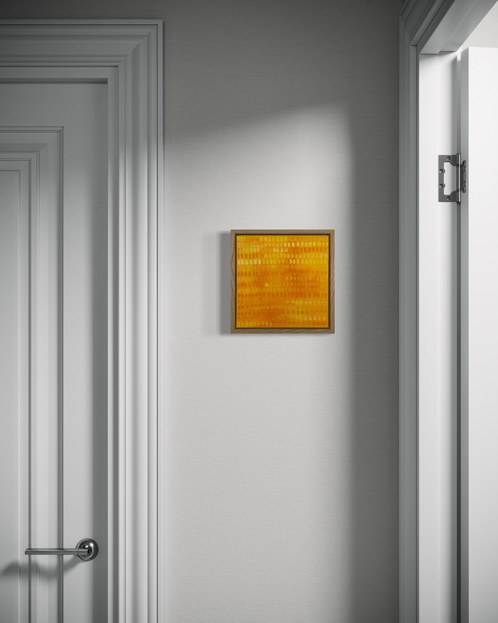 Framed in a premium oak 28mm deep floating frame, with hanging wire attached, ready to hang.
