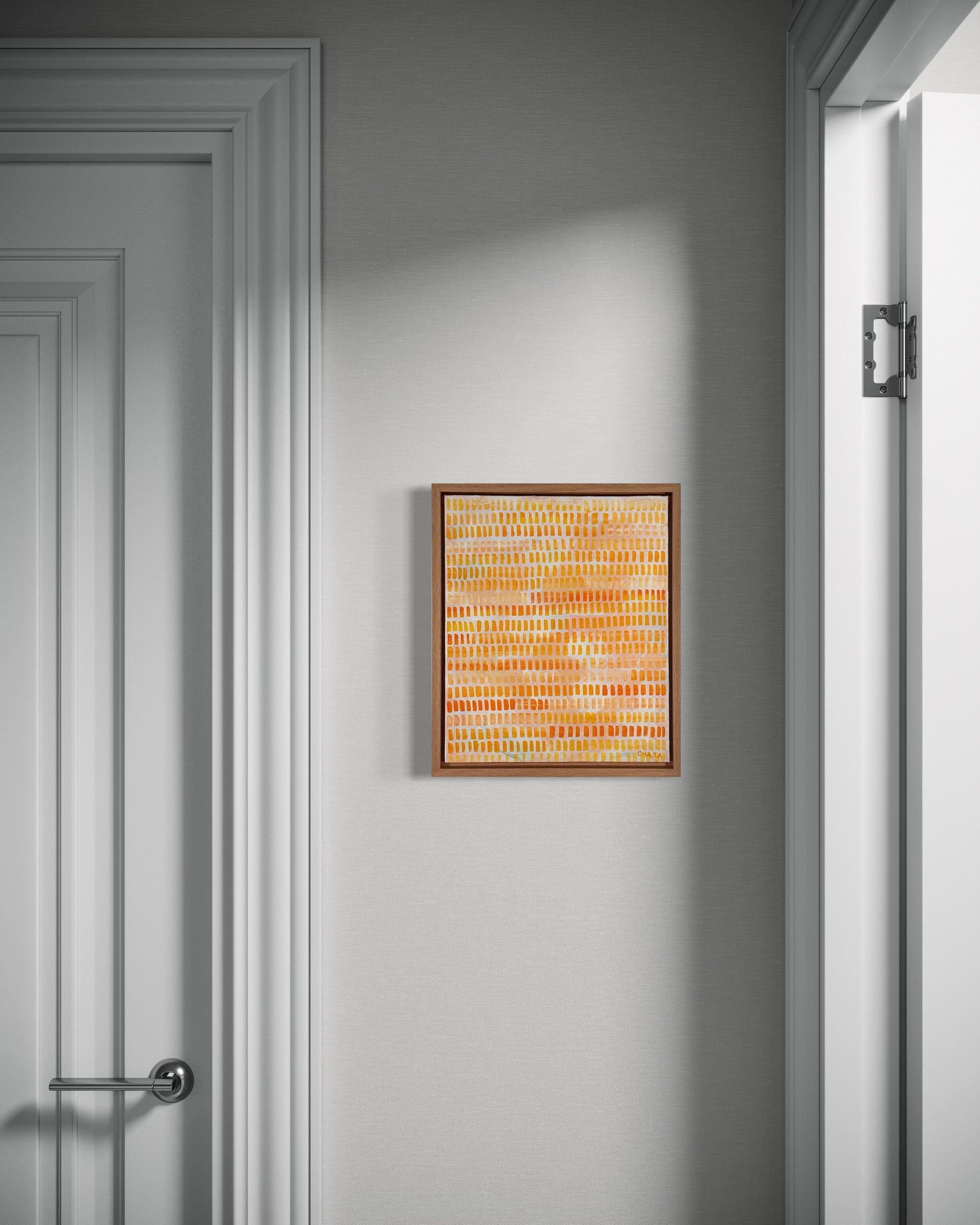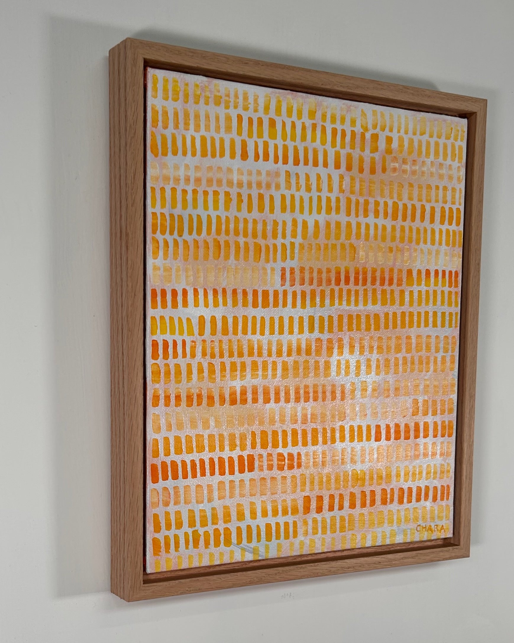 Framed in a premium oak 28mm deep floating frame, with hanging wire attached, ready to hang.