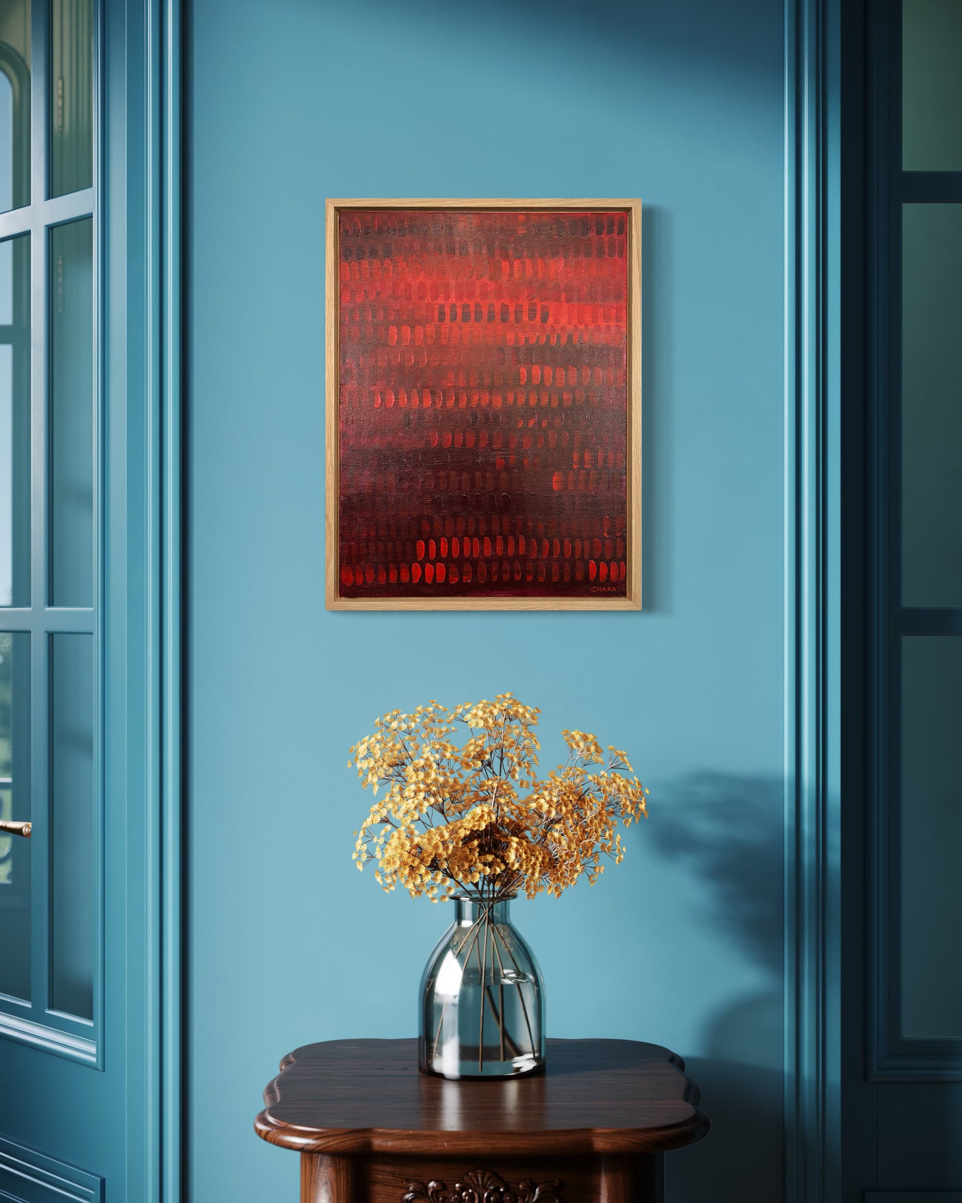 Framed in a premium oak 28mm deep floating frame, with hanging wire attached, ready to hang.