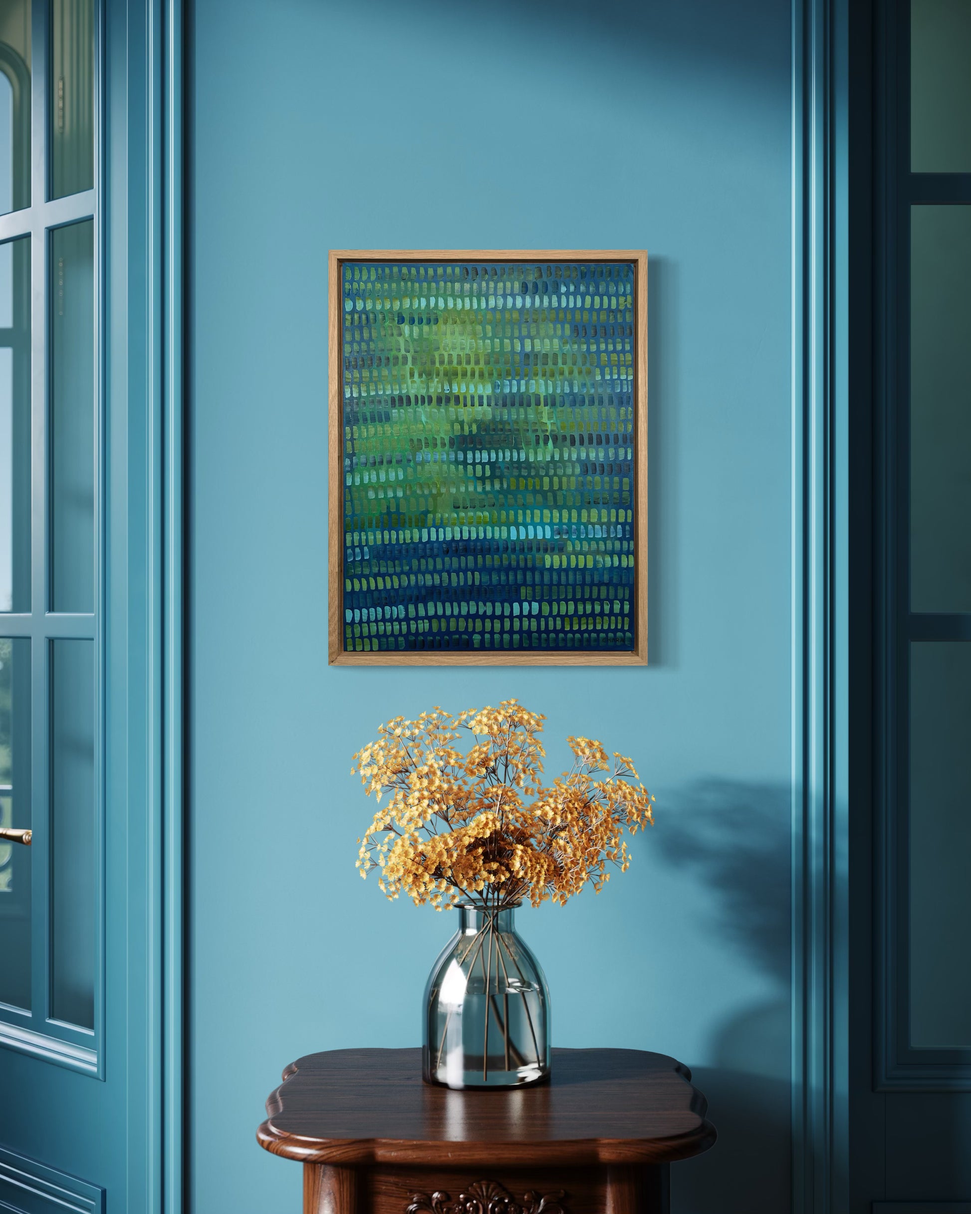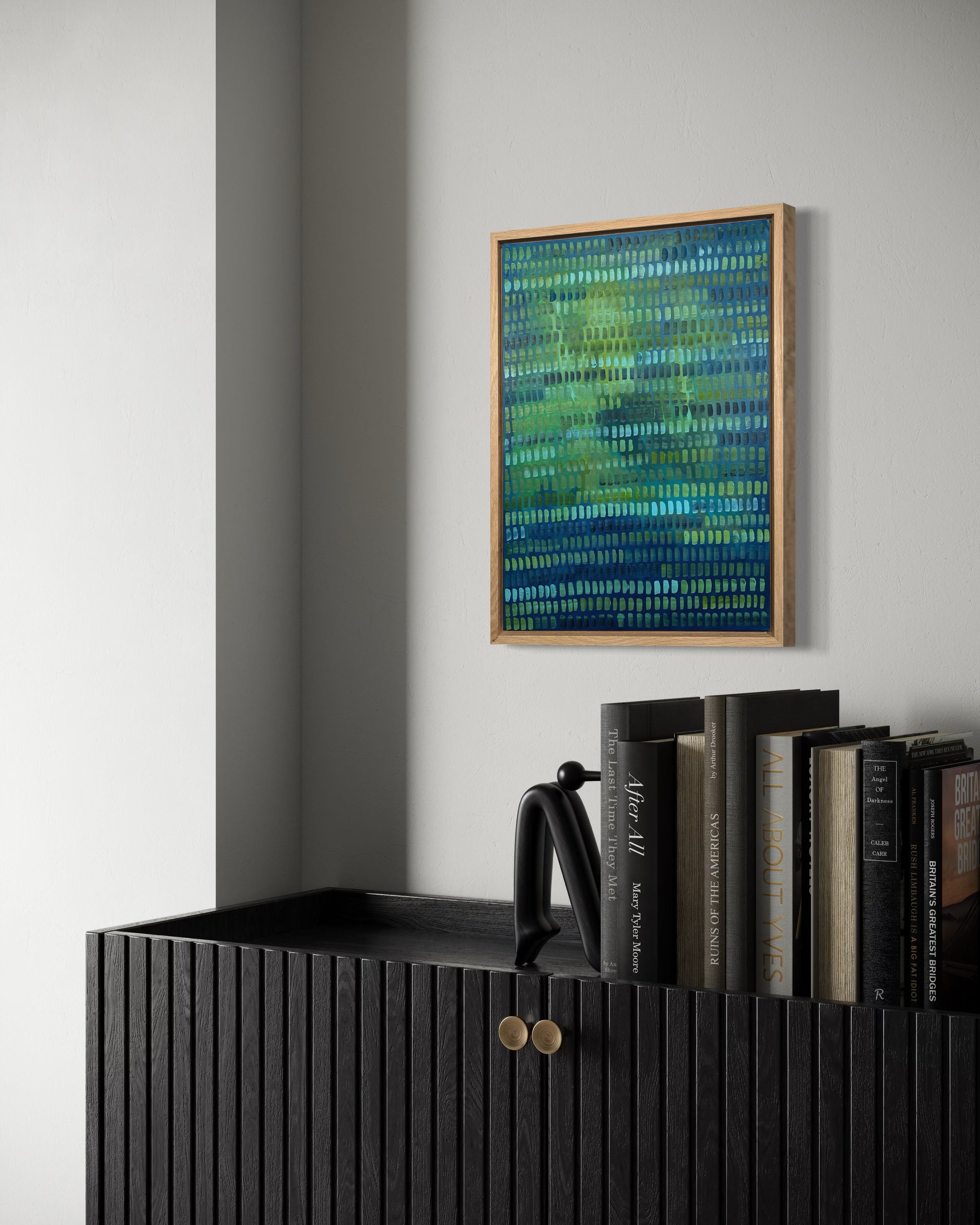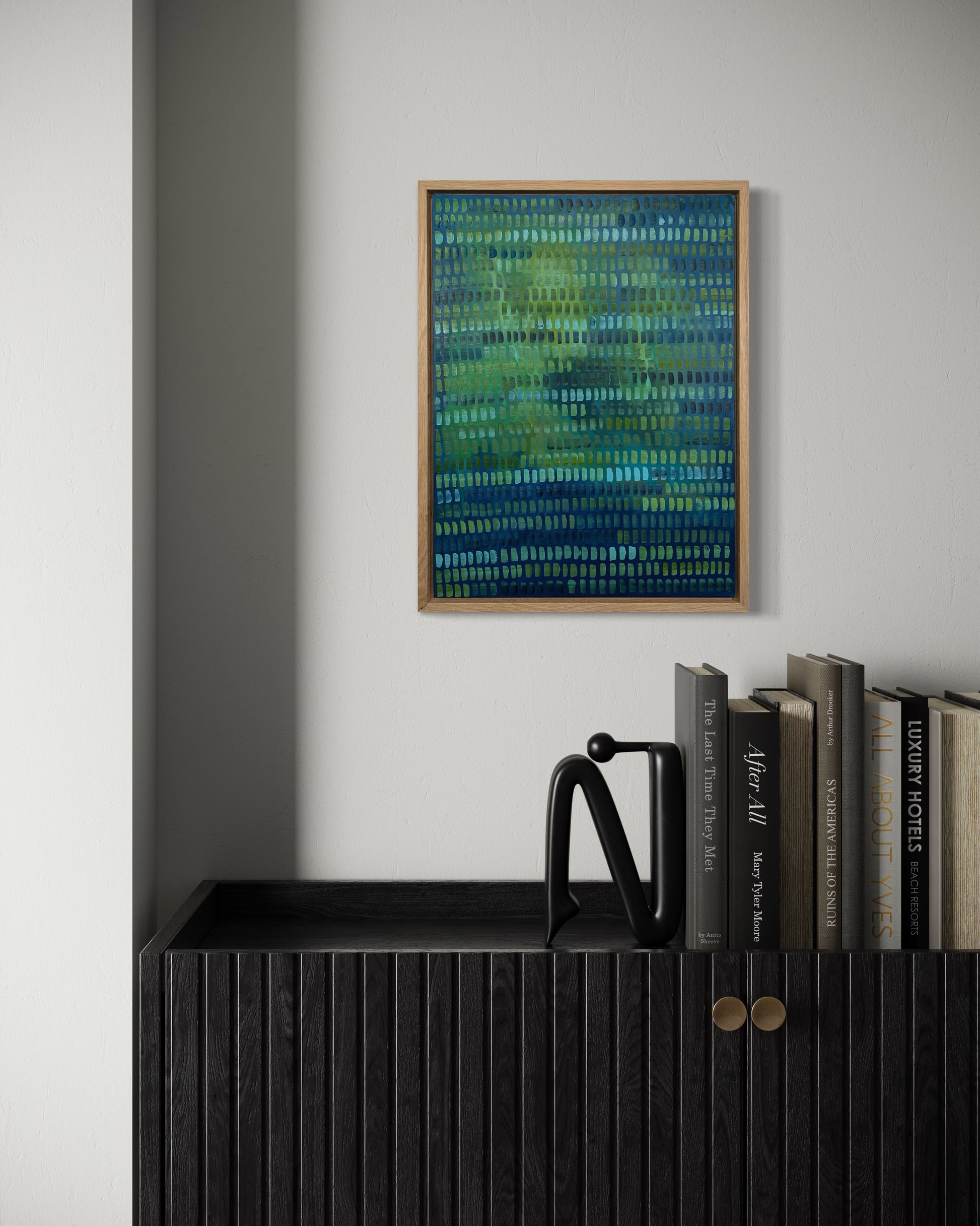 Framed in a premium oak 28mm deep floating frame, with hanging wire attached, ready to hang.