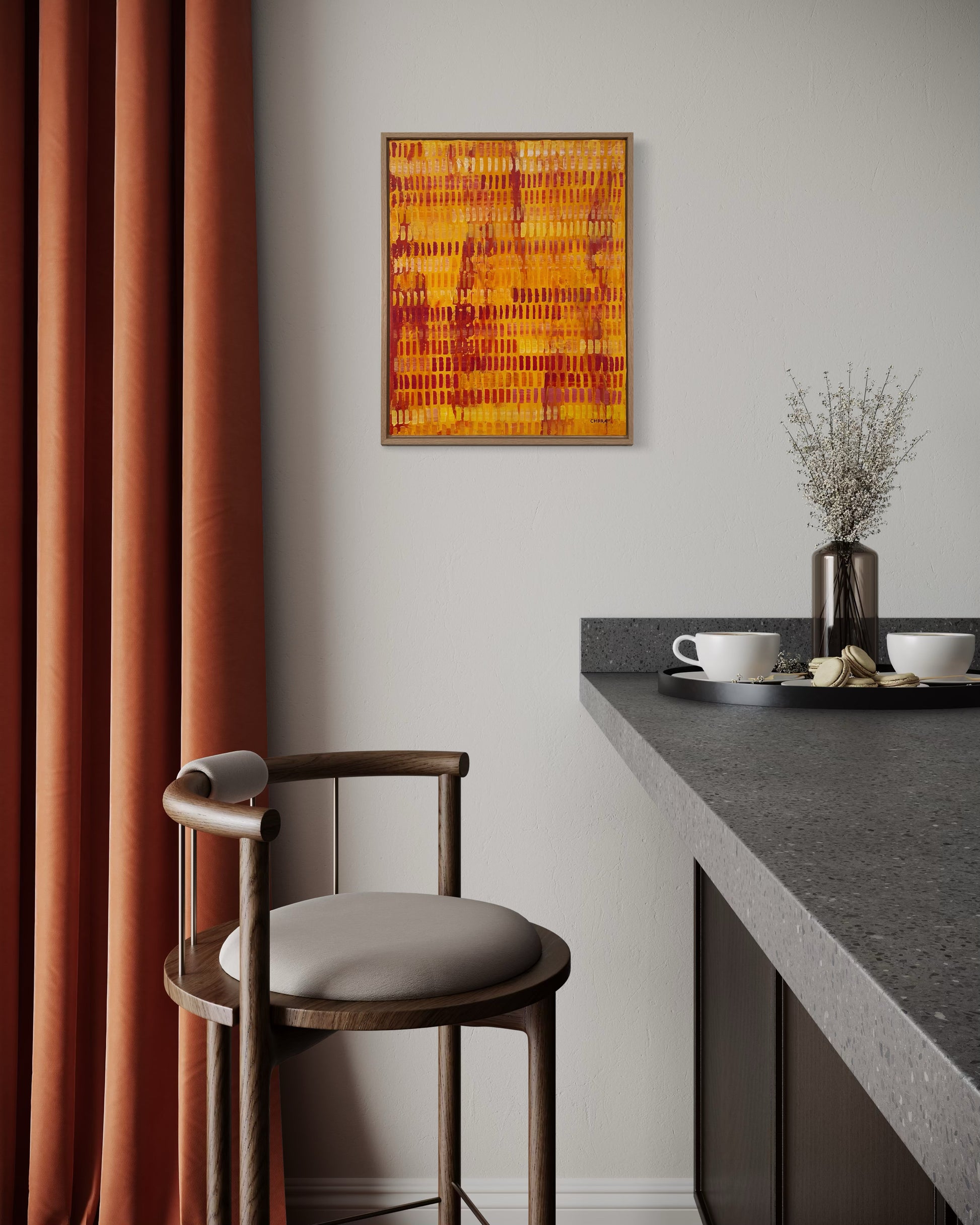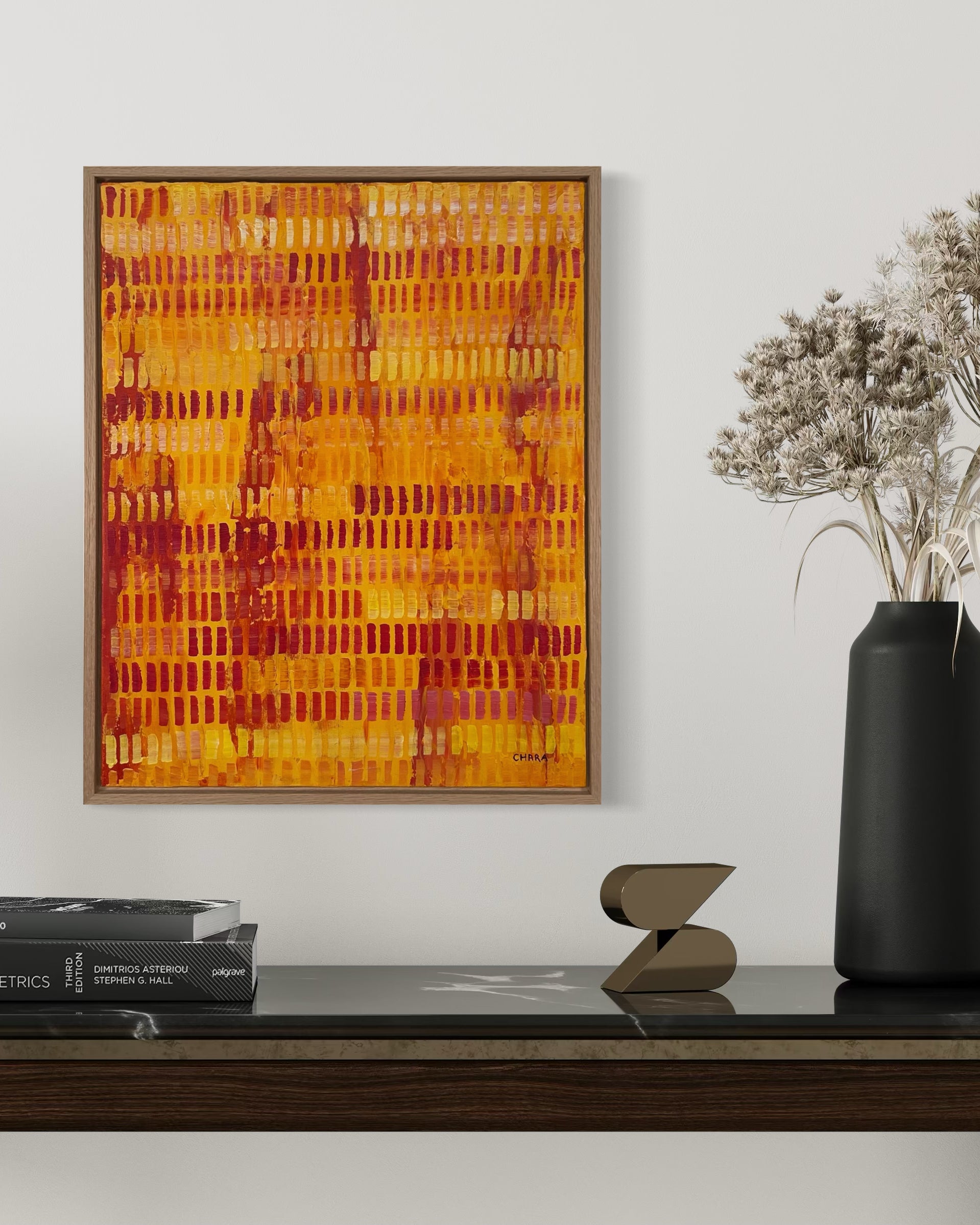 Framed in a premium oak 28mm deep floating frame, with hanging wire attached, ready to hang.
