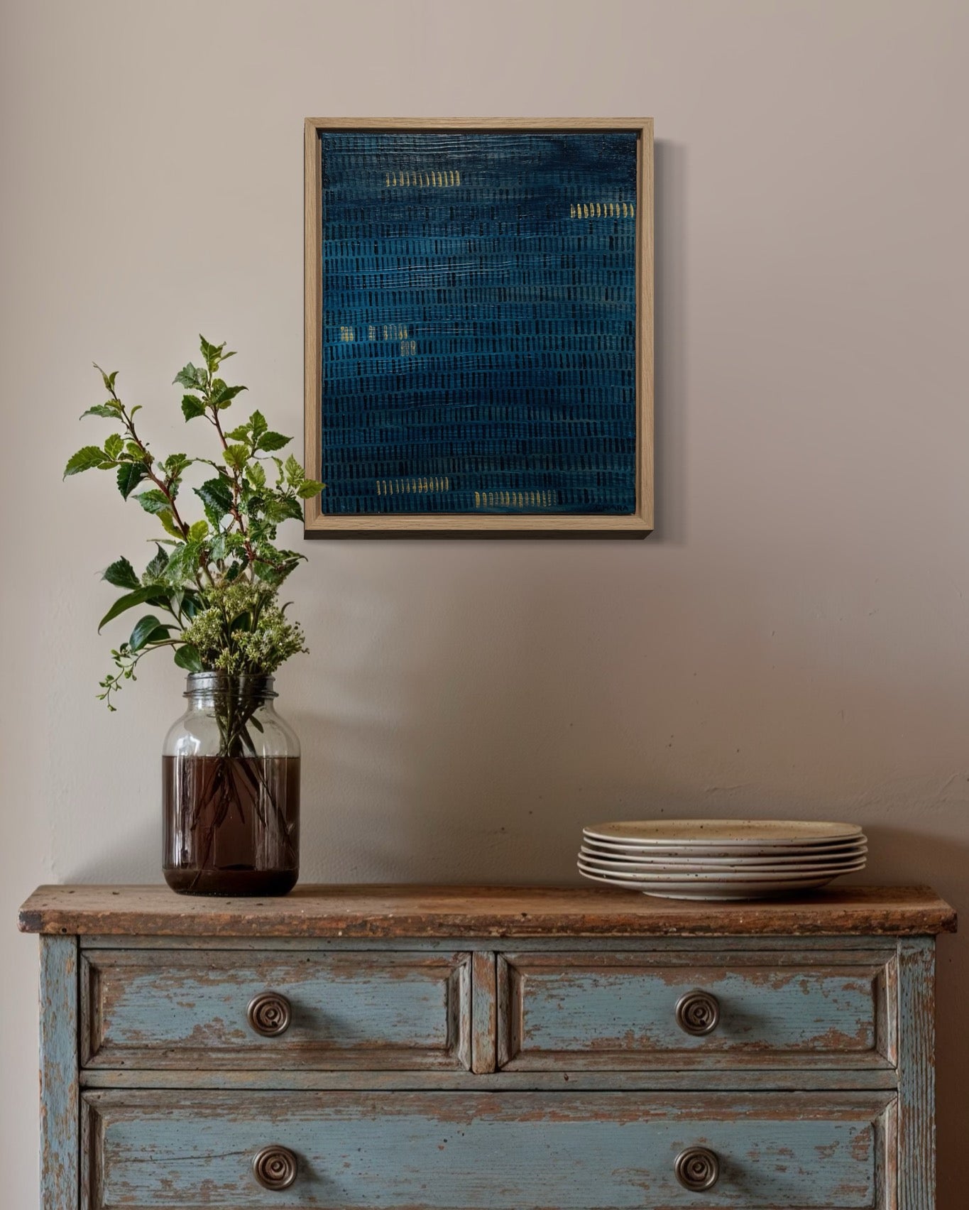 Framed in a premium oak 28mm deep floating frame, with hanging wire attached, ready to hang.