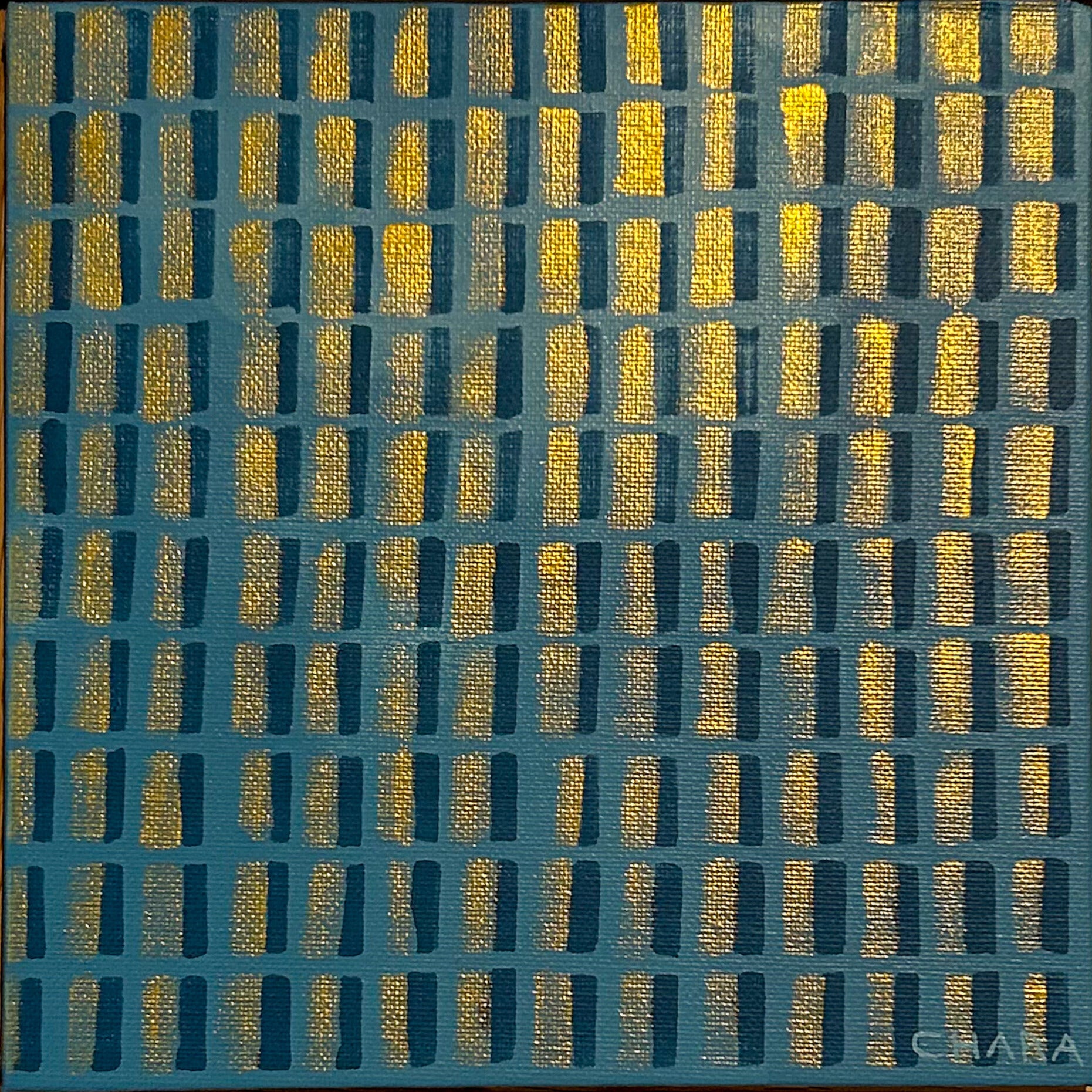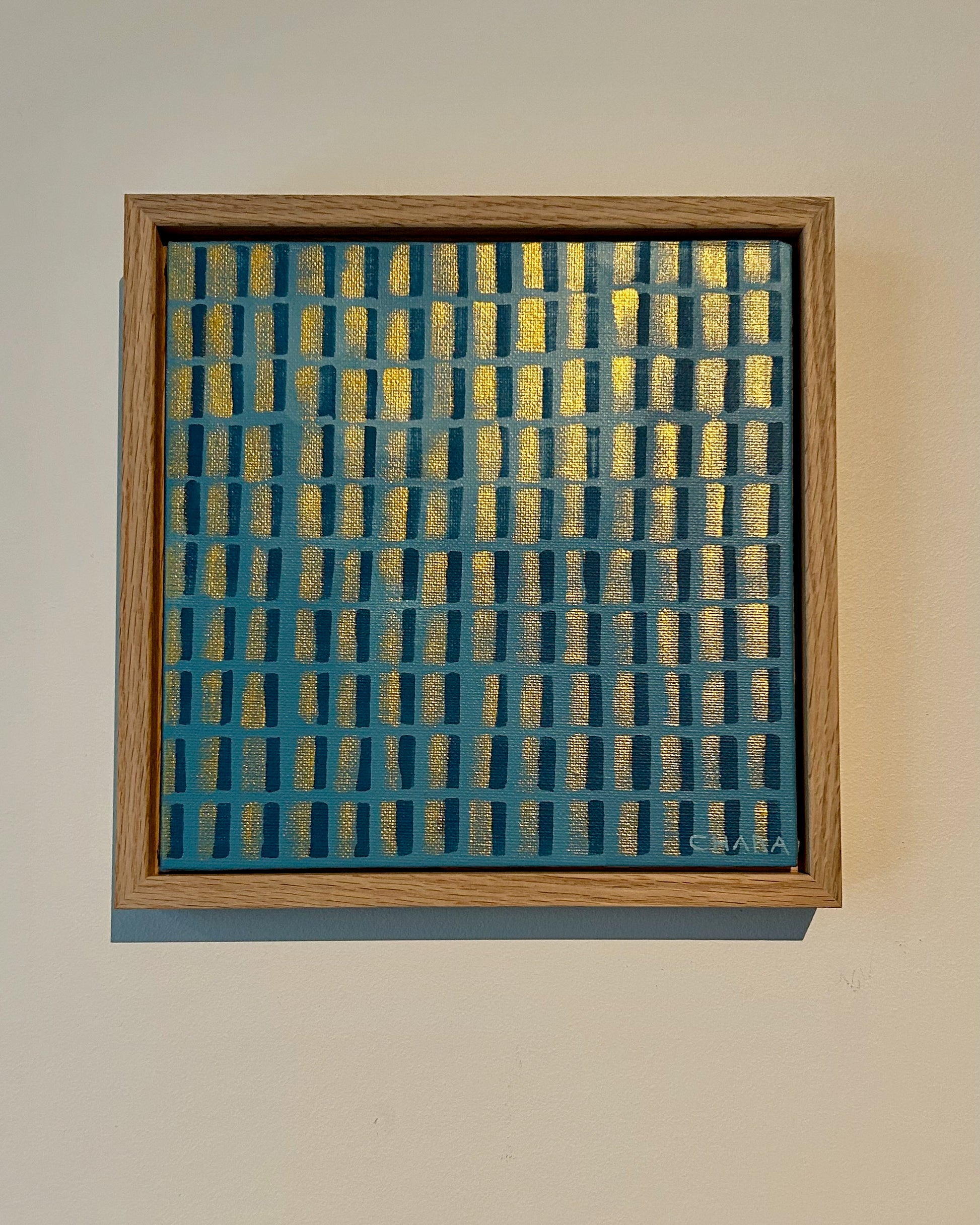 This original abstract painting features captivating colours inspired by the ever-changing sky. A perfect addition to an art collection needing a piece for a small space.